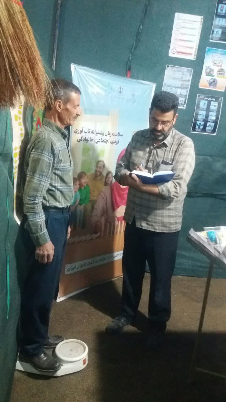 اندازهگیری قد، وزن و فشارخون برای علاقهمندان انجام شد و برگههای آزمایش قند و چربی جهت خطرسنجی بیماریهای غیرواگیر تحویل گردید.