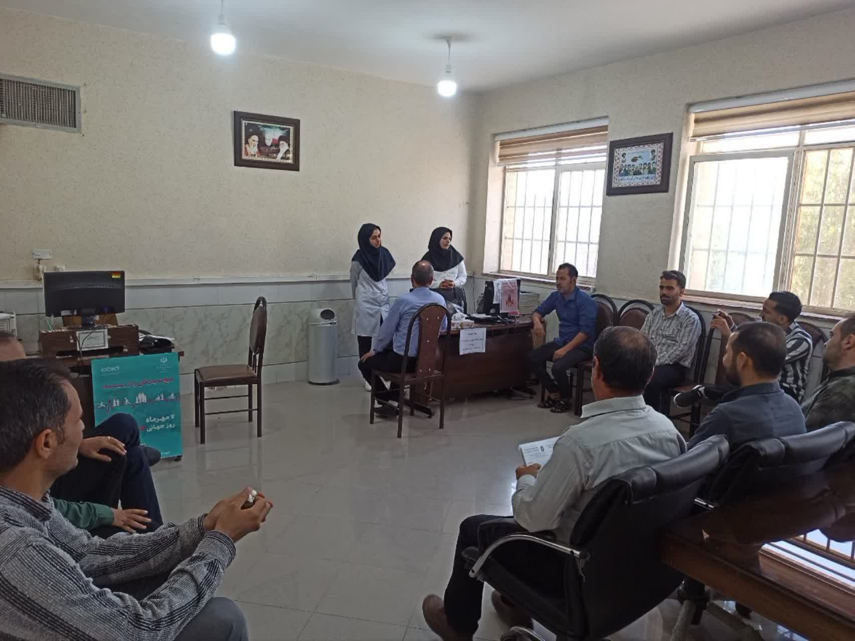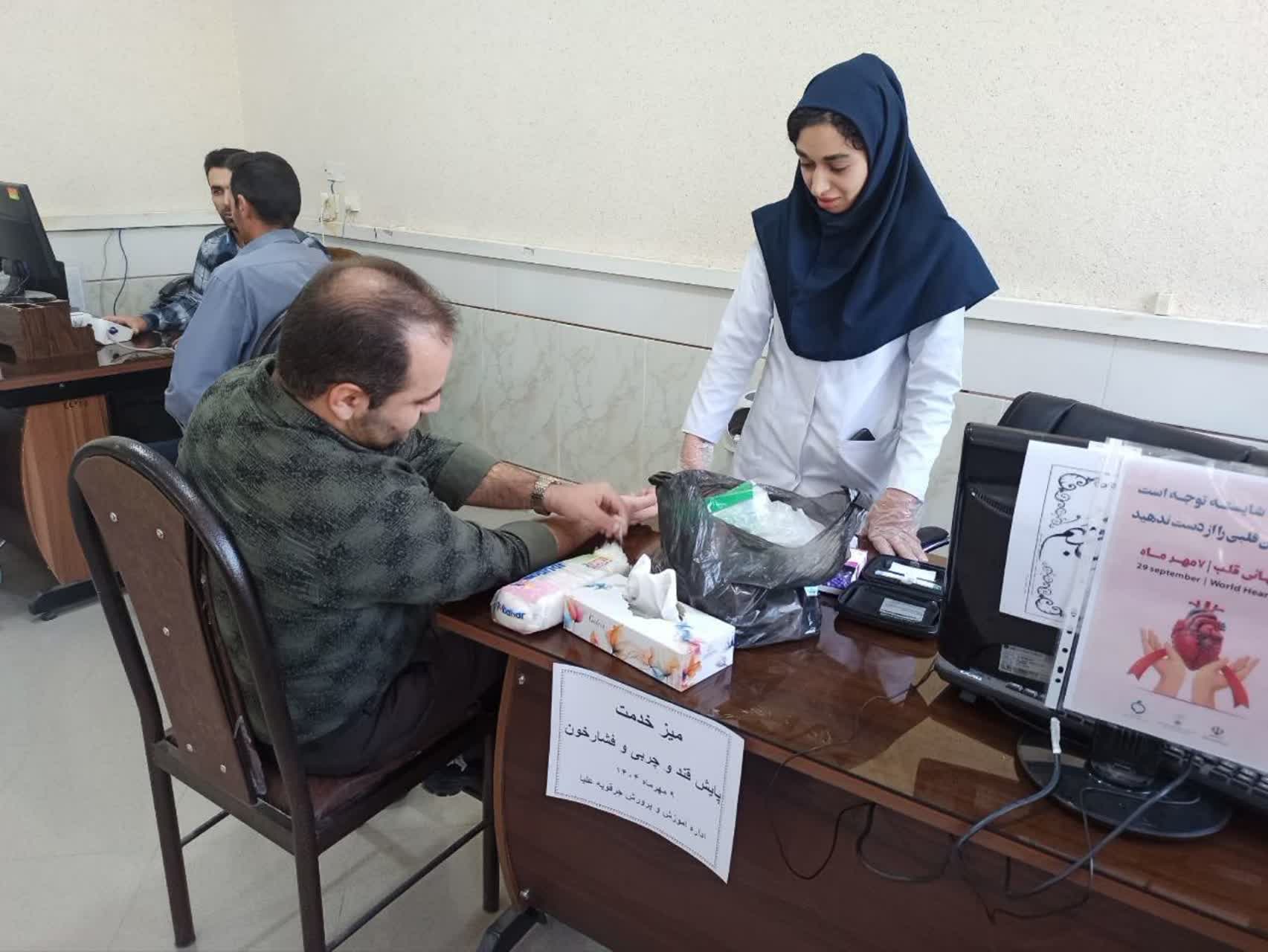 در این برنامه، مراقب سلامت مرکز حسن آباد به تبیین عوامل خطر بیماریهای قلبی عروقی برای پرسنل محترم اداره آموزش و پرورش پرداختند. همچنین خدماتی نظیر انجام تست قند و چربی خون، اندازهگیری شاخص توده بدنی (BMI) و خطرسنجی بیماریهای قلبی صادقی ارائه شد.
