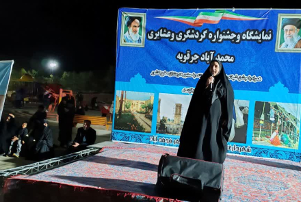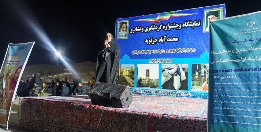 سخنرانی کارشناس مسئول واحد سلامت روان شبکه بهداشت در جشنواره گردشگری و عشایری شهر محمد آباد